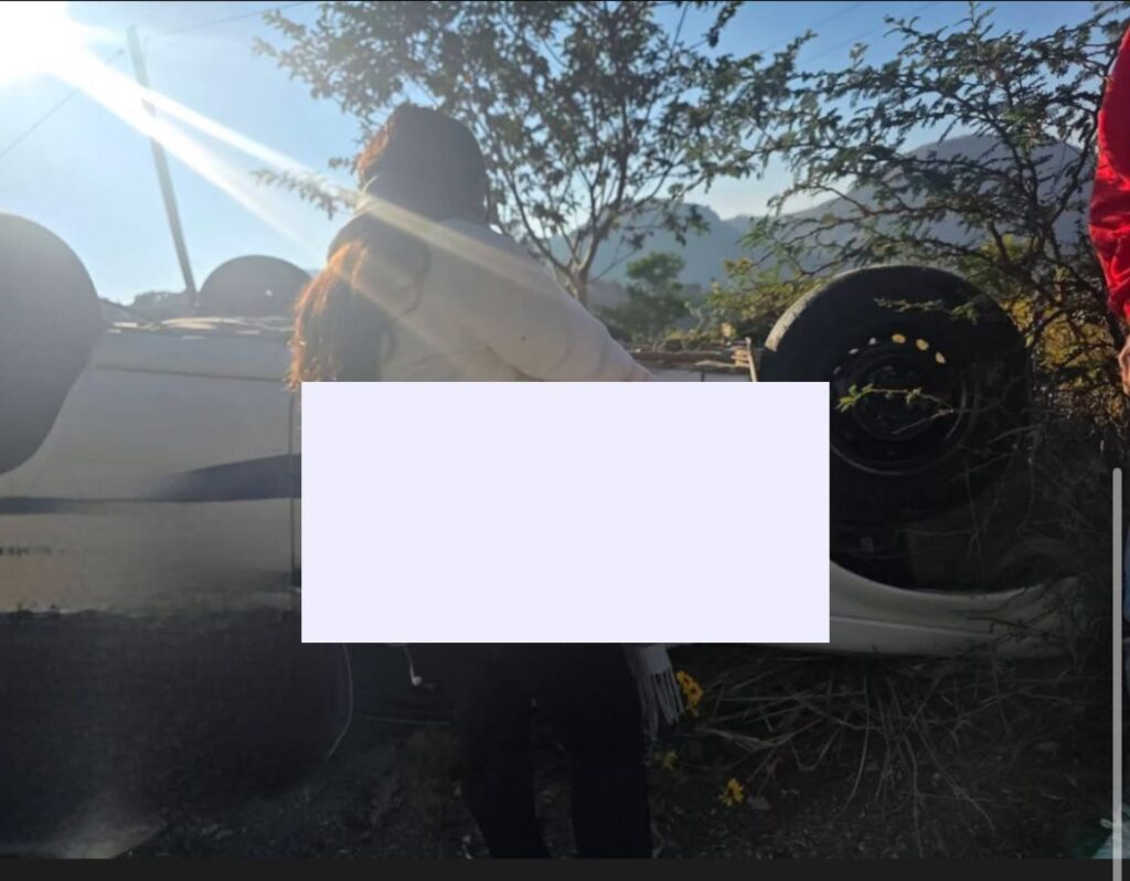 Tlapa de Comonfort, Gro., 18 de noviembre de 2025. —Una aparatosa volcadura sorprendió esta mañana la ruta Tlapa-Chilapa, a la altura del tramo conocido como ‘Las Antenas’, involucrando al taxi con número económico 247 que cubre dicha ruta.
