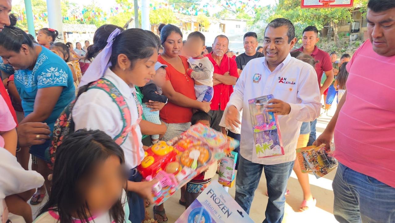 En un acto que refleja el compromiso del gobierno municipal con el bienestar de sus habitantes, el presidente municipal de San Luis Acatlán, Dr. Adair Hernández Martínez, llevó a cabo la entrega de juguetes a niñas y niños, así como apoyos alimenticios a familias de la comunidad de Poza Verde.