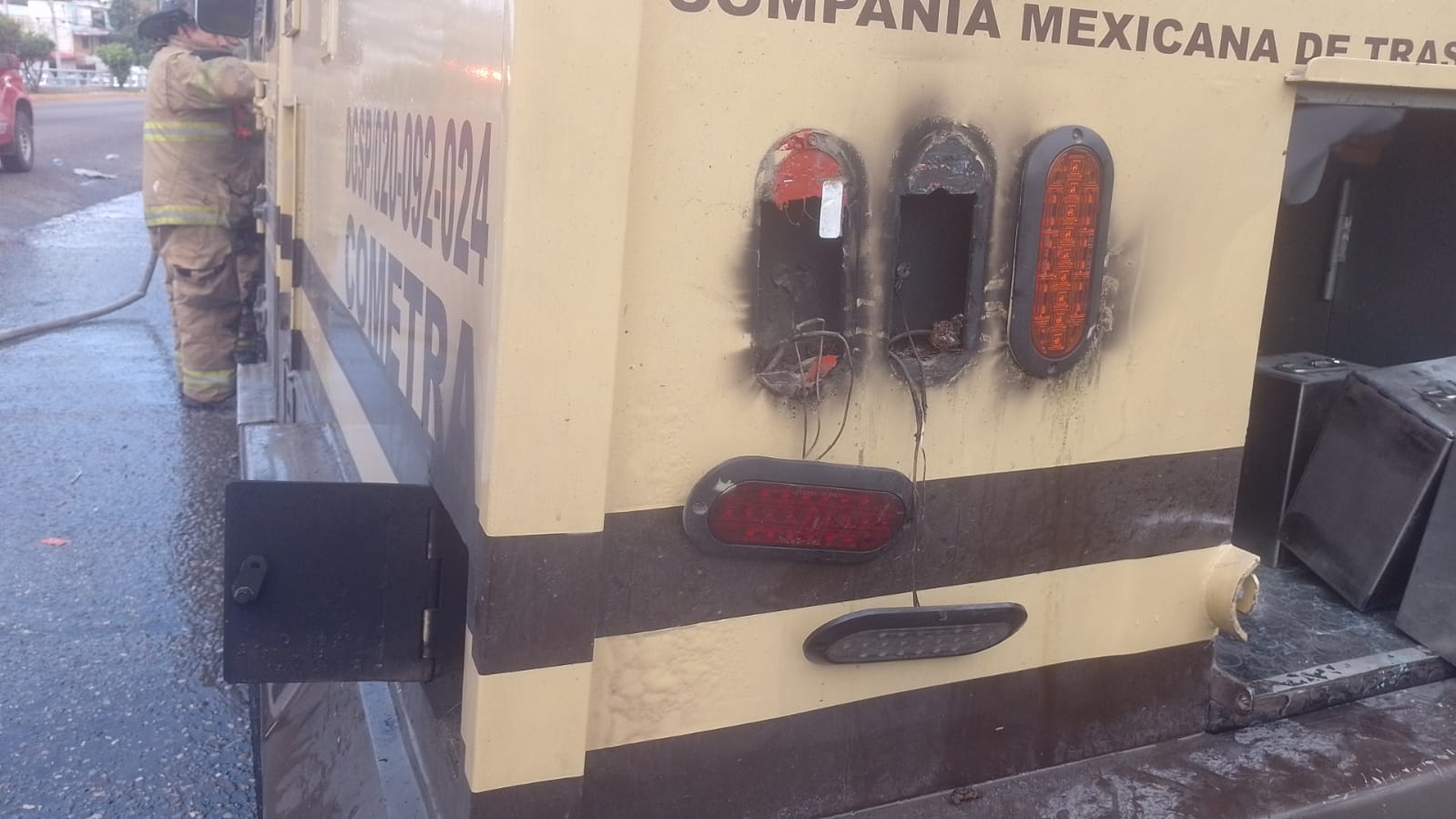 Acapulco, Gro., 02 de febrero de 2026.- Personal de la Coordinación General de Protección Civil y Bomberos de Acapulco atendió el incendio de un vehículo de traslado de valores, registrado la mañana de este lunes en la colonia Vista Hermosa, sobre la carretera Acapulco-México, donde el fuego ya se encontraba controlado al arribo de las corporaciones de emergencia.