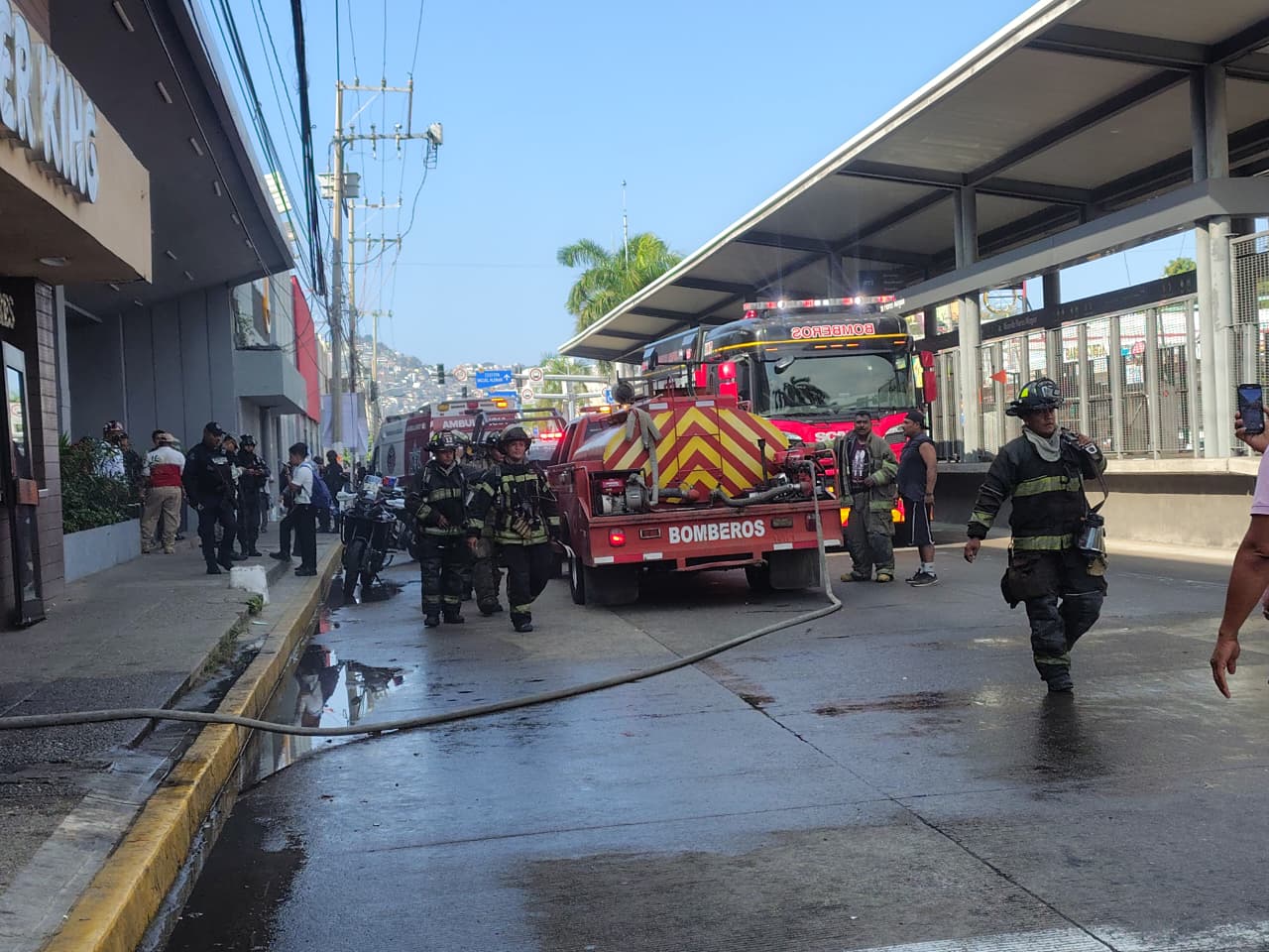 Tras el reporte emitido a la línea 911, poco antes de las 9:40 horas de este jueves, personal operativo de la Coordinación General de Protección Civil y Bomberos acudió al establecimiento denominado “Burger King”, situado a un costado de una tienda departamental, donde se alertó sobre la presencia de humo y fuego en el área de cocina.