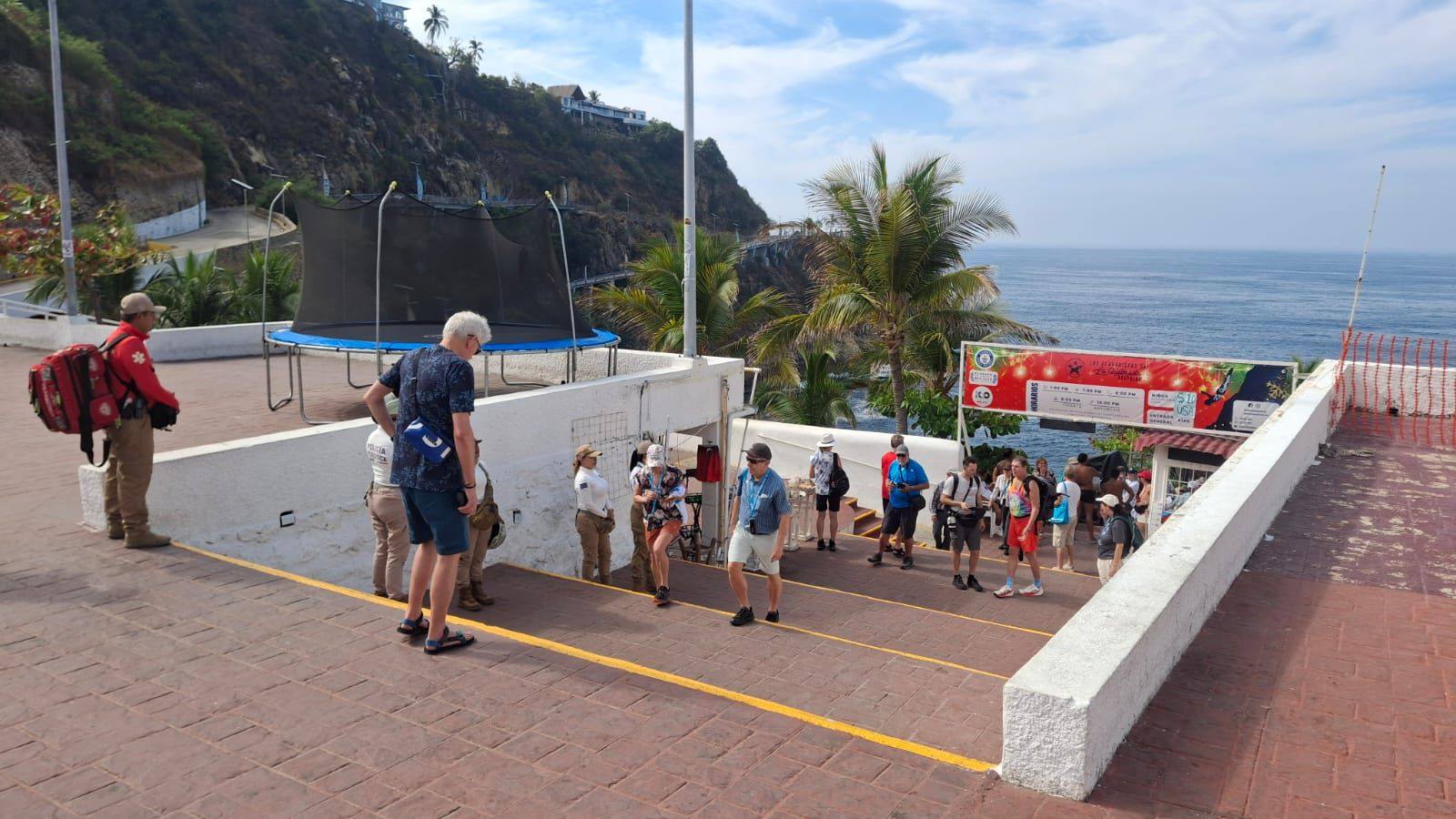 Elementos de la Policía Turística, Policía Vial, Policía Urbana y personal del Centro de Urgencias Médicas de Acapulco (CUMA) mantienen presencia en puntos estratégicos como el Parque de la Reina, La Quebrada, la Costera Miguel Alemán y zonas aledañas, donde ofrecen orientación, vigilancia preventiva y apoyo ciudadano a quienes llegan por vía marítima, así como a residentes y prestadores de servicios.