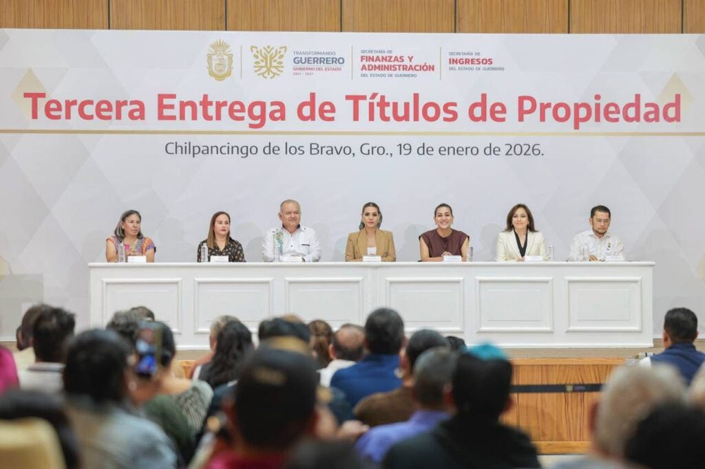 Chilpancingo, Gro., 19 de enero de 2026.– Como parte de la política de justicia social para consolidar la transformación en Guerrero, la gobernadora Evelyn Salgado Pineda entregó 163 títulos de propiedad a igual número de familias de distintas regiones del estado, otorgándoles certeza jurídica sobre su patrimonio y tranquilidad para su futuro.
