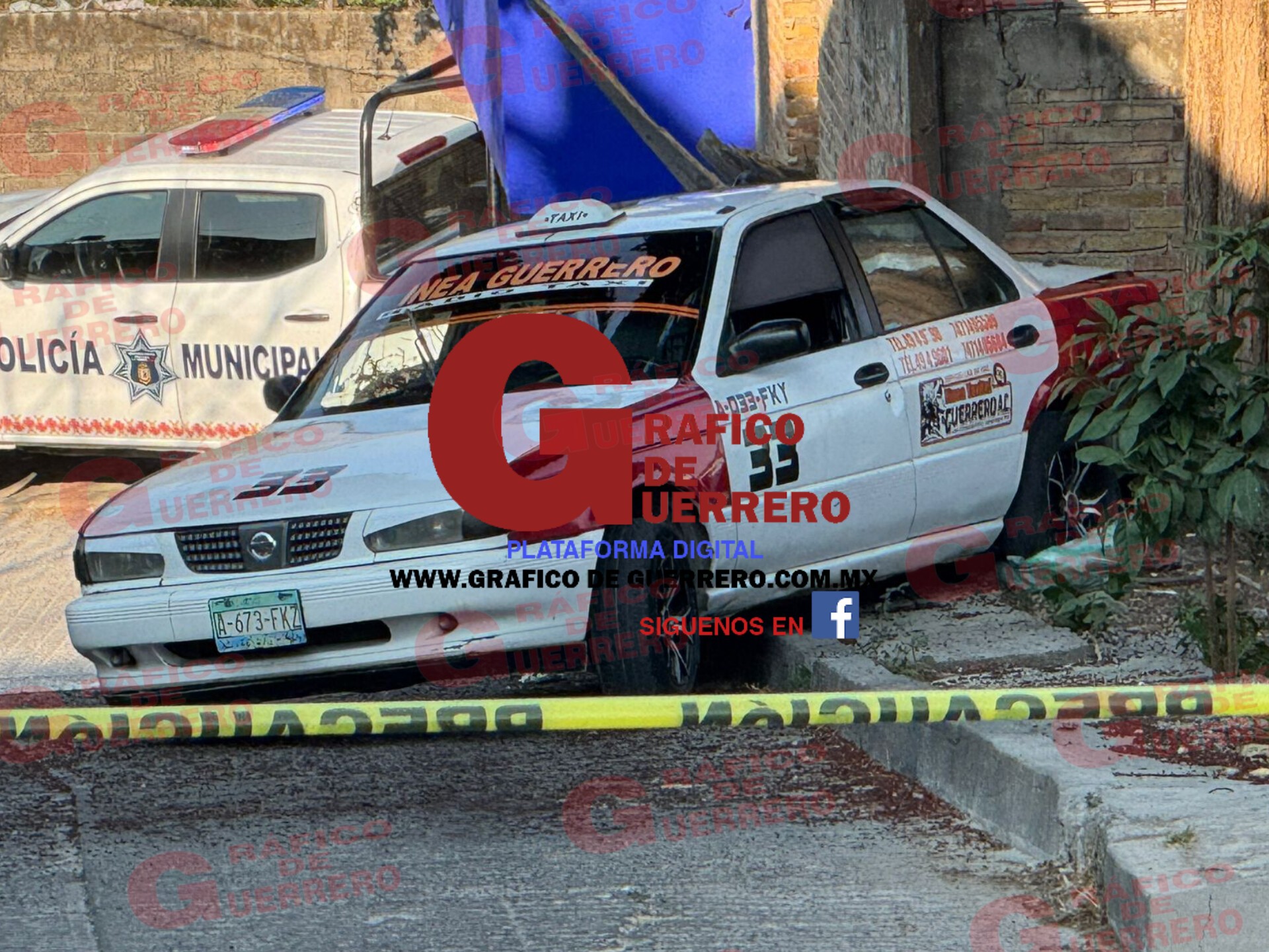 Al llegar fuerzas de seguridad, hallaron la unidad de alquiler de la linea Guerrero, marcado con el número económico 33, zona que de inmediato fue acordonada para resguardar los indicios.