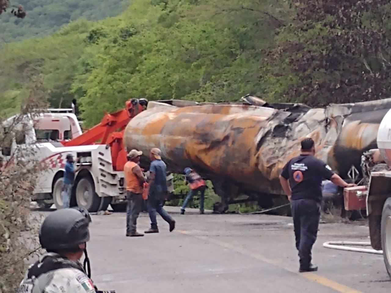 Sin embargo la tarde de este lunes nuevamente la circulación fue suspendida para poder realizar las labores de rescate de la pipa siniestrada en el que elementos de Protección Civil Estatal, Protección Civil Municipal, Policía Estatal y Guardia Nacional apoyados por grúas unieron sus fuerzas para realizar el retiro de la pipa de gasolina que volcó y se incendió.